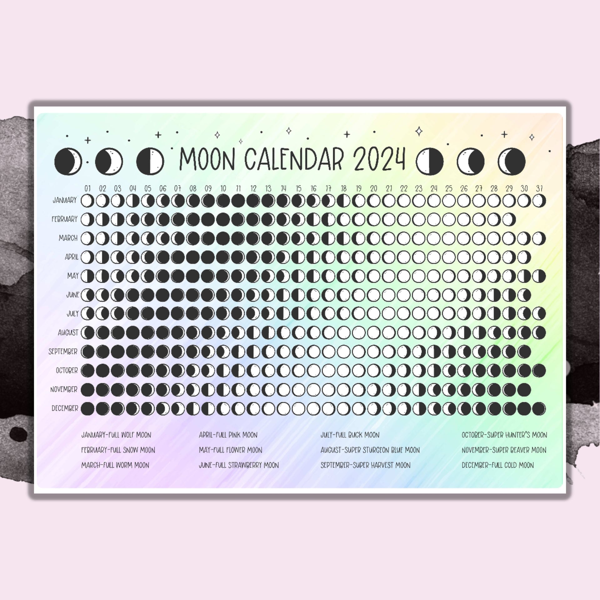 Moon Calendar 2024 Moon Phases Lunar Calendar Printable in A4 Size
